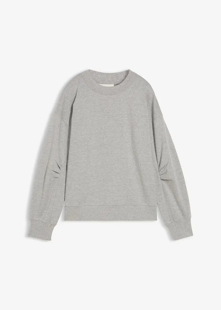 Langarm-Sweatshirt mit Rundhalsausschnitt weitem Ripp-Kragen sowie Abnähern am Ärmel aus Bio-Baumwolle