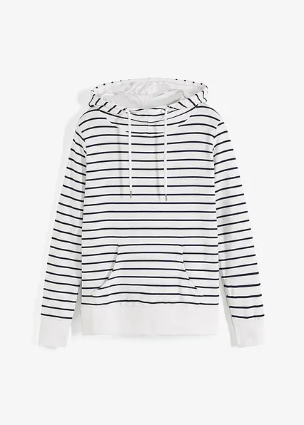 Eine Art Stehkragen verbindet dieses Sweatshirt mit der Kapuze. Das erhöht den Kuschelfaktor.
