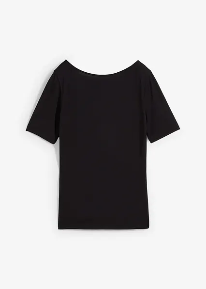 T-Shirt aus feiner Viskose in schwarz von vorne - bonprix