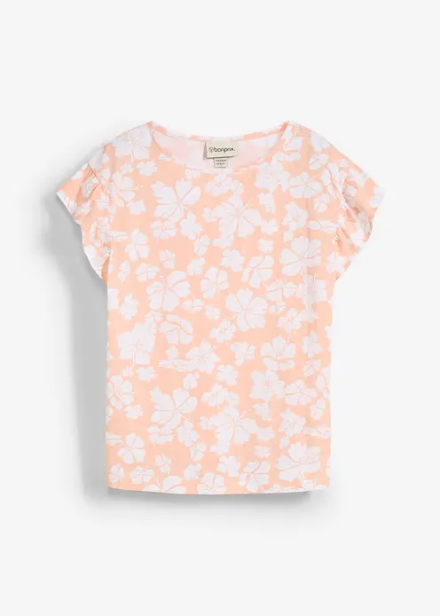 Sommerliches Top mit Volantärmeln: Rundhalsausschnitt, überschnittene Schultern, Allover-Print – ein luftig-leichter Hingucker!