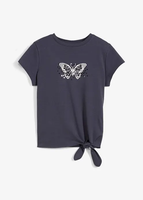 Kurzes T-Shirt aus reiner Baumwolle mit Knotendetail und Aufdruck