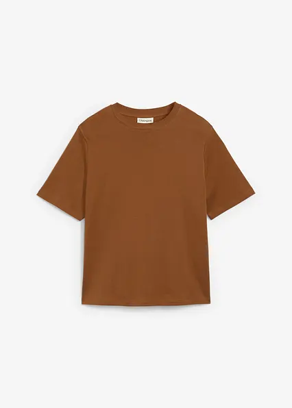 T-Shirt aus reiner schwerer Bio-Baumwolle in braun von vorne - bonprix