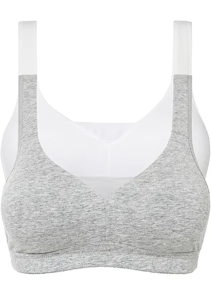 T-Shirt BH ohne Bügel mit Baumwolle (2er Pack) in weiß von vorne - bonprix