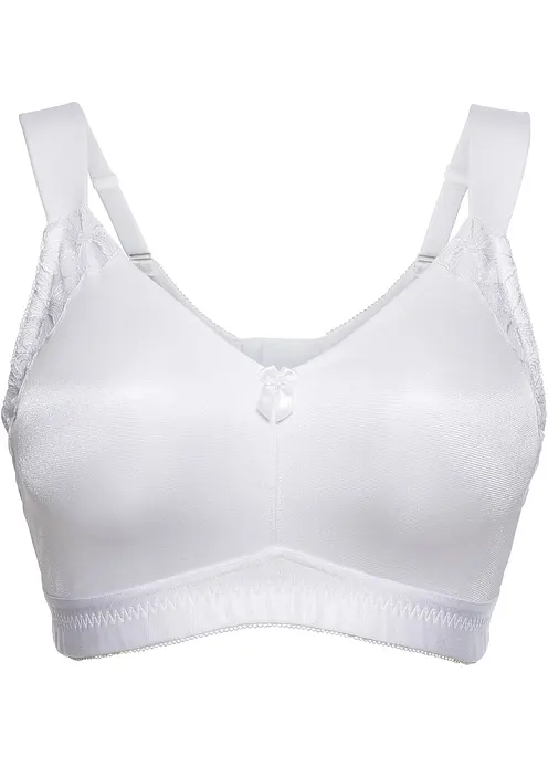 Klares Design und vielfältige Kombinationsmöglichkeiten - dieser Entlastungs-BH vereint gleich mehrere Besonderheiten in einem. Die nahtlosen Cups lassen sich darüber hinaus sehr gut unter T-Shirts tragen und die breiten, gepolsterten Träger entlasten den Rücken und bieten einen hohen Tragekomfort. Ein kontrastierender Spitzenbesatz verleiht dem Ganzen modische Akzente.