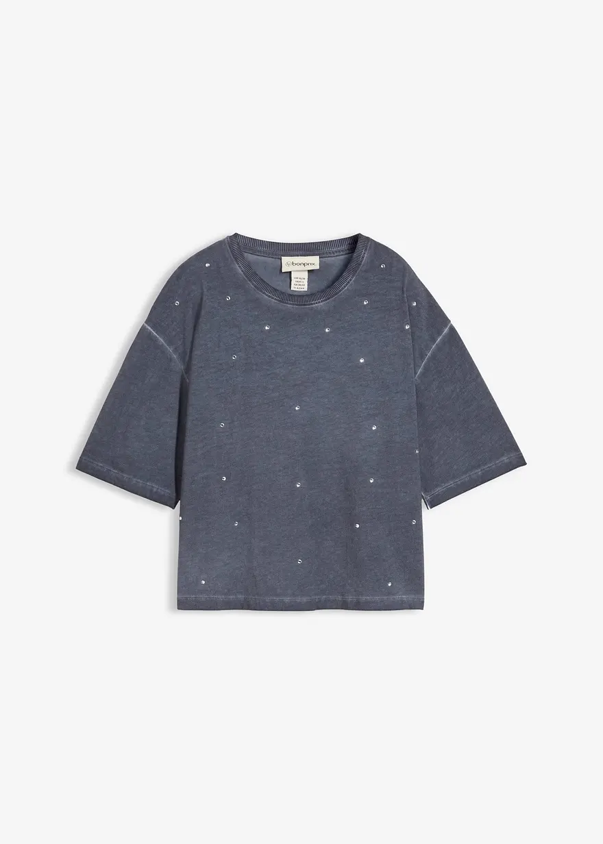 Lässiges T-Shirt mit Glitzersteinen aus reiner Baumwolle