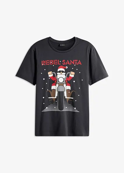 T-Shirt mit Weihnachtsmotiv aus reiner Bio-Baumwolle in schwarz von vorne - bonprix