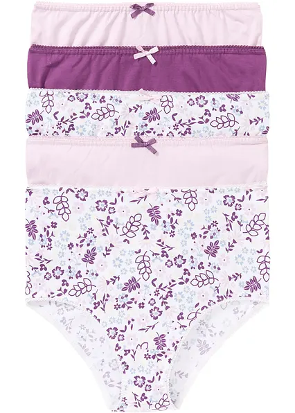 Dieser wunderschöne Highwaist Slip begeistert durch seinen süßen Blumendruck und seine komfortable Leibhöhe. In der 5er-Packung befinden sich 2 bedruckte, 2 rosa und 1 flieder farbene Slips.