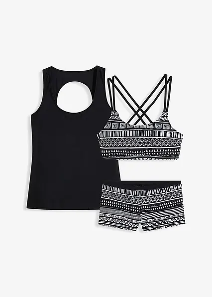Dreiteiliger Tankini im coolen Kontrast-Look