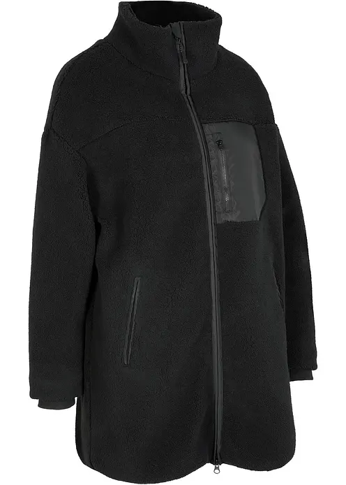 Kuschelige Teddy-Fleece Jacke mit Reißverschlusstasche auf Vorderseite
