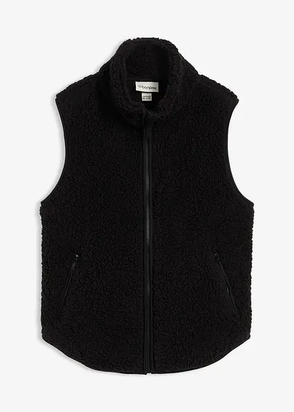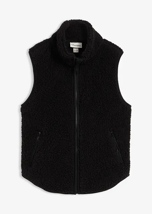 Diese Teddy-Weste ist der perfekte Begleiter für kühle Tage! Sie verfügt über einen praktischen Stehkragen und ist ärmellos. Mit einer lockeren Passform, die die Hüfte bedeckt, bietet sie Komfort und Bewegungsfreiheit. Die runden Säume vorne und hinten sind mit passendem Piping verziert, ebenso wie der Saum und der Reißverschluss. Die Weste hat einen praktischen Reißverschluss mit einem dazu passenden Zugband und bietet zudem zwei Reißverschlusstaschen mit Piping. Ein Must-have für jede junge Garderobe – einfach anziehen und wohlfühlen!