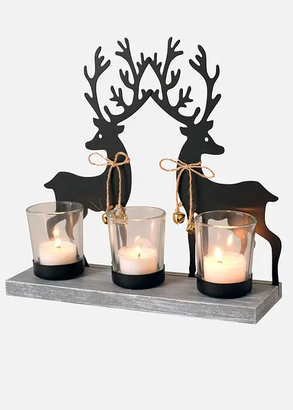 Teelichthalter mit Rentieren und Glasteelichter. Ergibt mit eingesetztem Teelicht (nicht enthalten) eine stimmungsvolle weihnachtliche Dekoration.