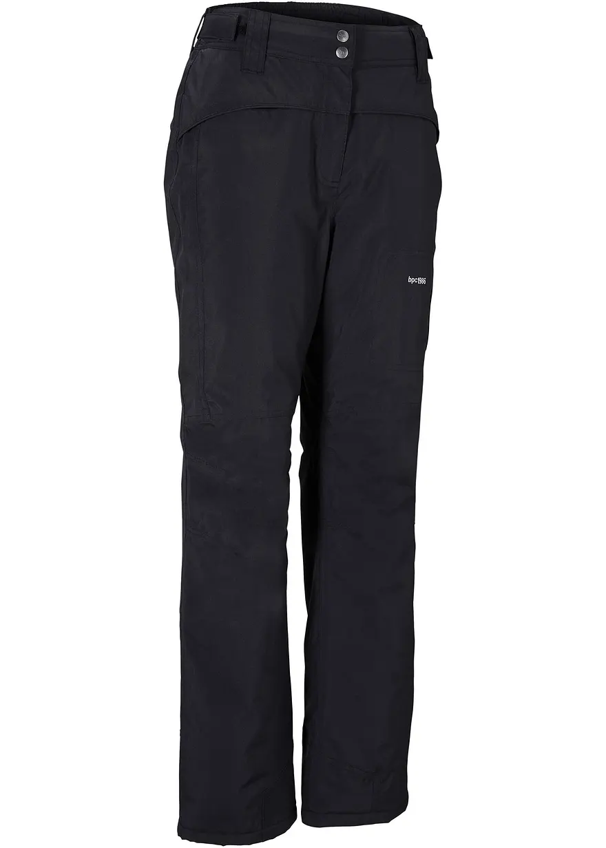 Ein modischer Begleiter für eine aktive Freizeitgestaltung ist diese lange Funktions-Thermohose von bpc. Das gerade geschnittene Modell eignet sich dank zahlreicher positiver Eigenschaften hervorragend für sportliche Betätigungen im Freien wie etwa Joggen oder Walking: Die Funktionshose ist windabweisend wie auch wasserdicht designt und zeigt sich angenehm wärmend. Der hohe elastische Bund mit breiten Gürtelschlaufen kann mit einem Klettverschluss stufenlos in der Weite reguliert werden. Vorne und an der Seite sind praktische Reißverschlusstaschen eingearbeitet. Dekoratives Detail ist die kleine Stickerei auf dem Oberschenkel.