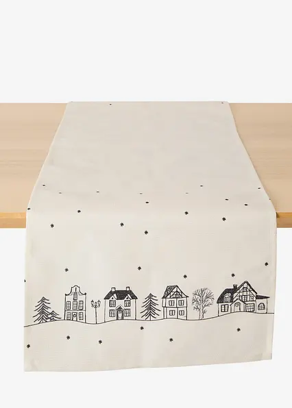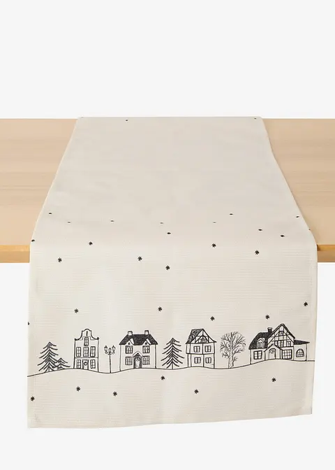 Zaubere mit diesem entzückenden Tischläufer eine behagliche Atmosphäre auf deinen Esstisch! Das liebevoll gezeichnete Wintermotiv mit stilisierten Häusern, Tannen und zarten Schneesternchen verleiht deinem Zuhause im Handumdrehen eine festliche und gleichzeitig dezente Eleganz. Und das Beste: Der wasserabweisende Stoff macht ihn auch noch besonders pflegeleicht und alltagstauglich!