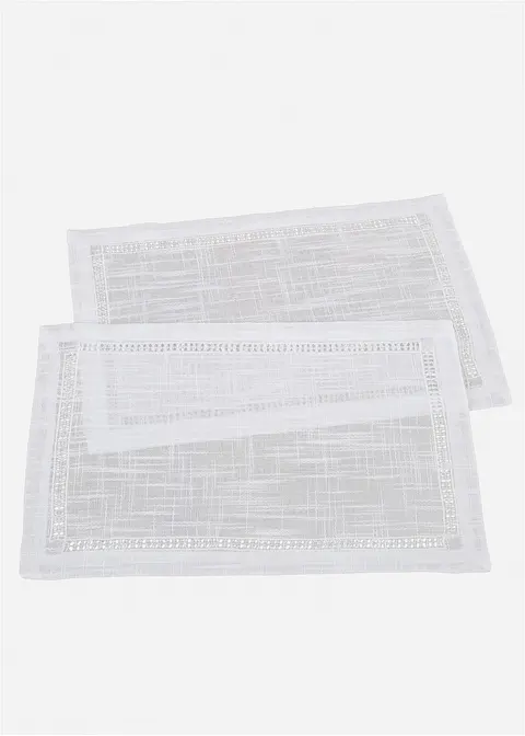 Die Platz-Sets im praktischem 2er Pack sind schlicht weiß mit verspieltem Design. Sie passen zu vielen Stilen und Einrichtungen.