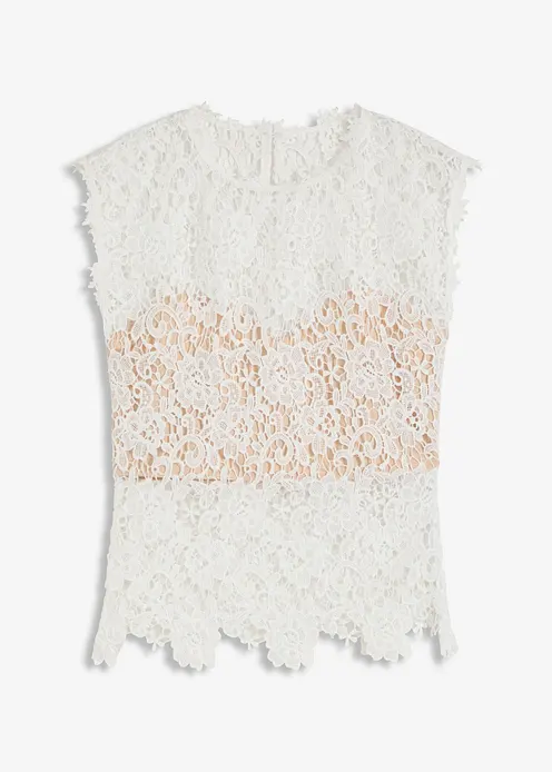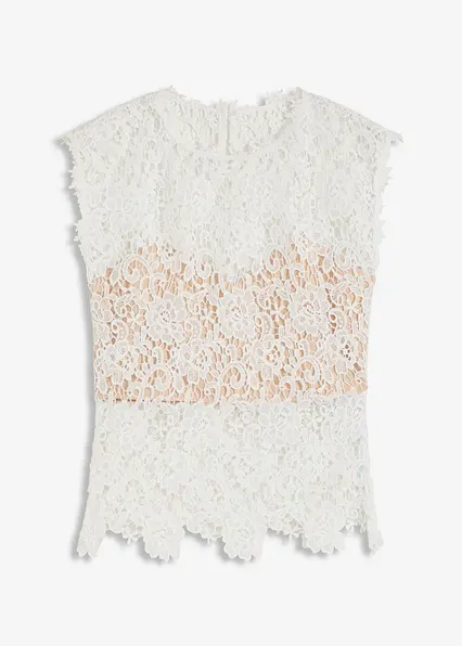 Romantisch und feminin: Top aus Spitze mit bezauberndem Blumenmuster und hautfarbenem Futter im Brustteil