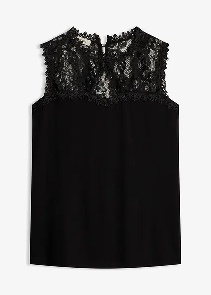Körperbetont geschnittenes Top mit Spitze und rückwärtigem Knopfverschluss