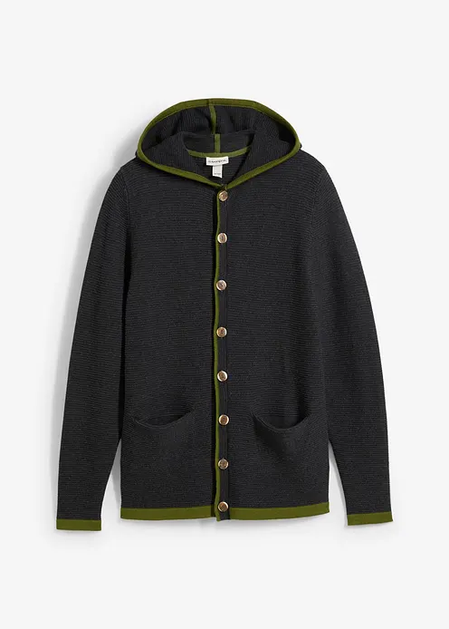 Trachten-Strickjacke mit Kapuze aus weichem Baumwollmix