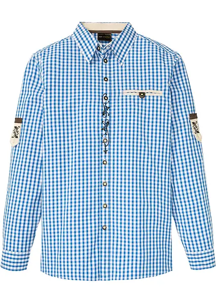 Bayrisches Trachtenhemd mit Krempelärmel und Karomuster, perfekt für die Wiesn