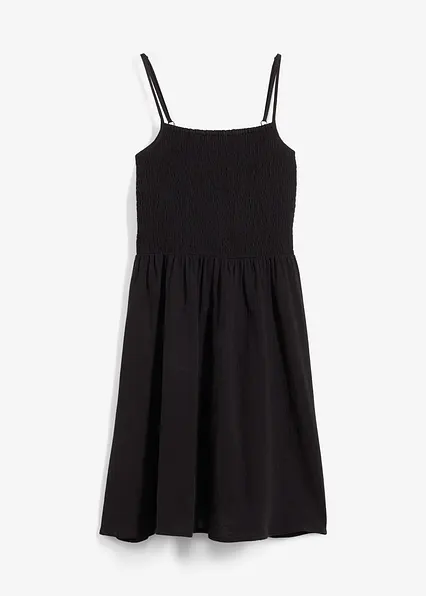 Trägerkleid aus luftigem Musselin in schwarz von vorne (Totalaufnahme) - bonprix