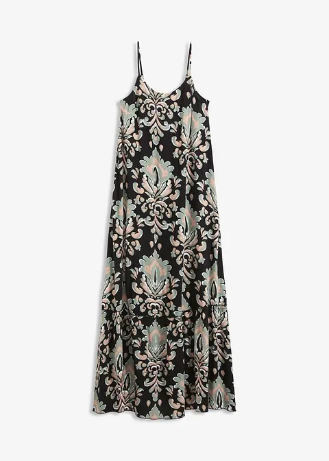 weit geschnittenes Trägerkleid in Maxi-Länge aus strukturierter Viskose