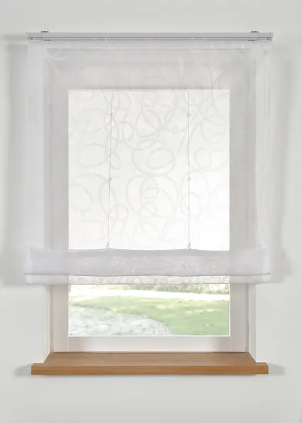 Transparentes Raffrollo, fertig genäht, aus Voile, bedruckt, inkl. Zubehör, mit Klettband und -Schiene oder Schlaufen, waschbar und pflegeleicht.