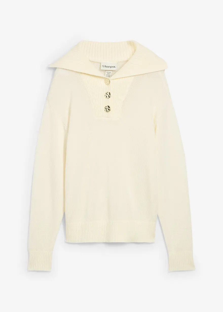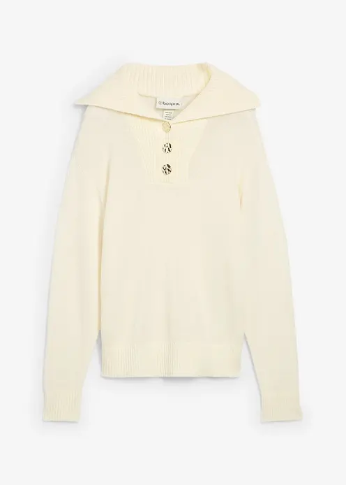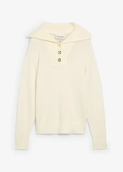 Troyer-Pullover aus Merinowolle in weiß von vorne - bonprix