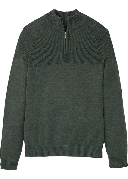 Pullover mit Komfortschnitt, Stehkragen und Ripp-Bündchen