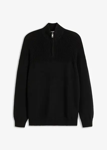 Pullover mit Komfortschnitt, Stehkragen und Ripp-Bündchen