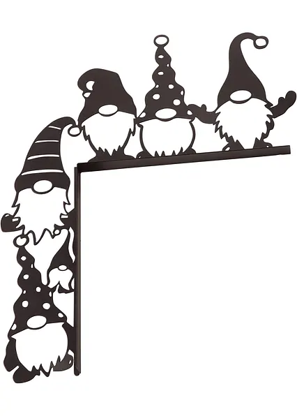 5 lustige Wichtel schmücken die Ecke des Türrahmens