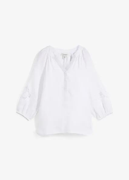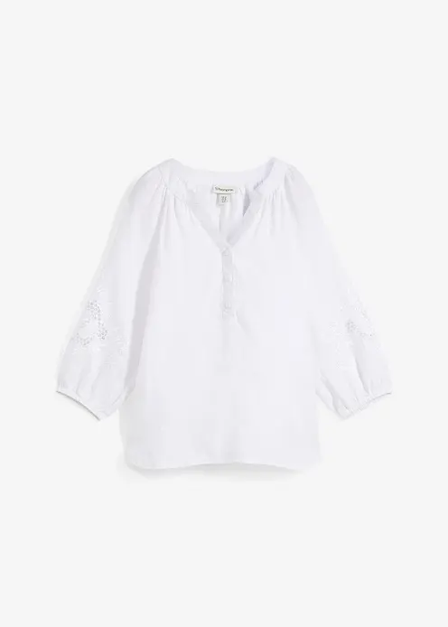 mit schöner Lochstickerei am 3/4 Ärmel, reinem Leinen