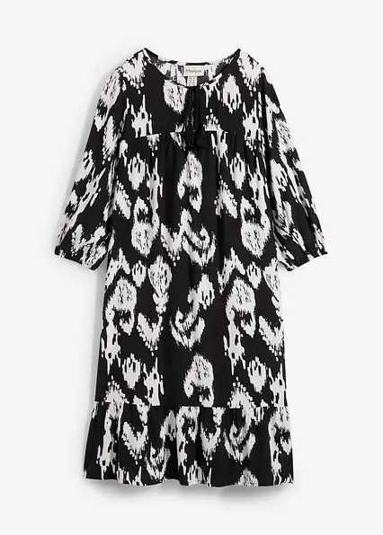 Tunika-Kleid in weiter Passform. Mit 3/4 Ärmeln und Kordelbindung mit Tasseldetail am Ausschnitt.