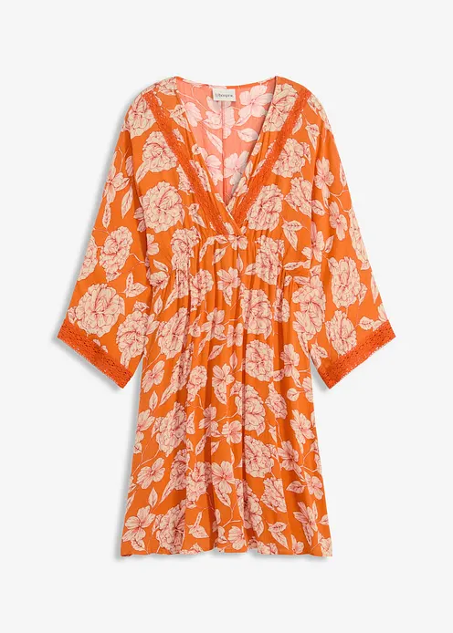 sommerliches Tunika-Kleid aus strukturierter Viskose mit dekorativer Spitze am Ausschnitt vorne und am Ärmelsaum