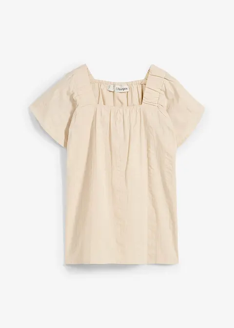 Baumwollbluse aus leichtem Strukturmaterial mit Flügelärmeln und elastischen Trägern