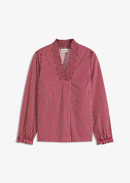 feminine Bluse mit Streifen-Design und Smok am Ausschnitt