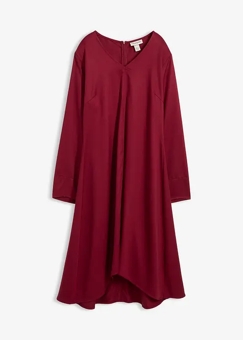 Halblanges, ausgestelltes Kleid mit Abnähern an den Ärmelabschlüssen sowie Ziernaht an Vorder- und Rückseite. Verdeckter Reißverschluss hinten.