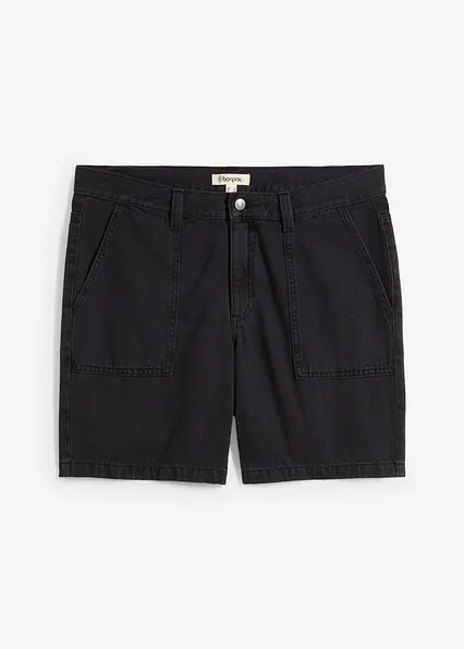 Twill-Shorts aus reiner Baumwolle, Loose Fit in schwarz von vorne - bonprix