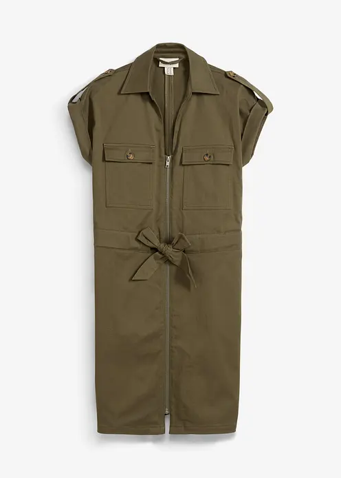 Trendiges Twill-Kleid mit Cargo-Details und verstellbaren Bindeband in der Taille in legerer Passform.
