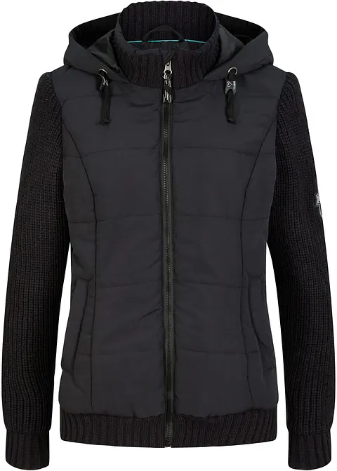 Jacke in Westen-Optik mit Strickärmeln und Kapuze