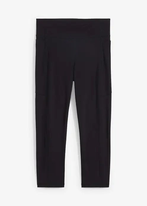 Ultrasofte Sport-Leggings mit seitlichen Taschen, Capri-Länge in schwarz von vorne - bonprix