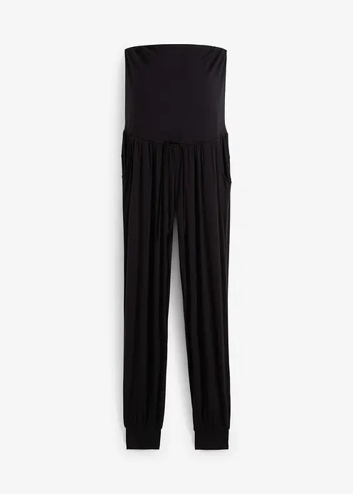 Hose aus zertifizierter Viskose mit geradem Bein und elastischem Saum. Der breite Umschlagbund sorgt für eine bequeme Passform während und nach der Schwangerschaft.