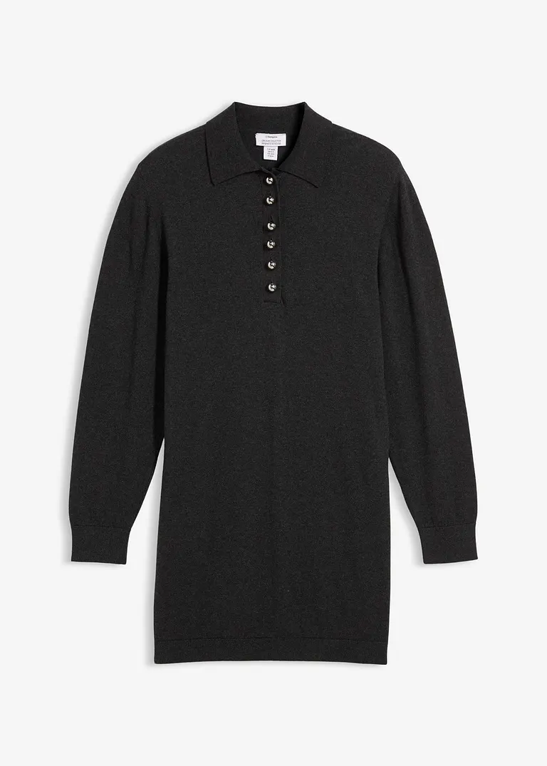 Schwangerschaftskleid aus Feinstrick aus Bio-Baumwolle. Mit modischem Polokragen und extra langer Knopfleiste mit Zierknöpfen, die ein bequemes Stillen sowie ein einfaches An- und Ausziehen ermöglichen. Ausgestattet mit weichen Rippbündchen an Ärmeln und Saum. Perfekt kombinierbar mit blickdichter Strumpfhose, Leggings oder einer schmalen Jeans.