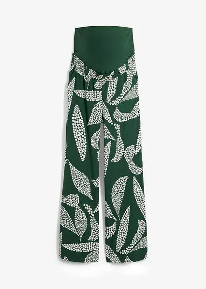 Bedruckte Umstandshose aus gewebter Viskose mit elastischem Bund mit verstellbaren Kordelzügen. Mit praktischen Eingriffstaschen vorne. Der breite, angesetzte Jerseybund aus Baumwolle sorgt für eine optimale Passform am Bauch. Mit bequemer Passform und weitem langen Bein.