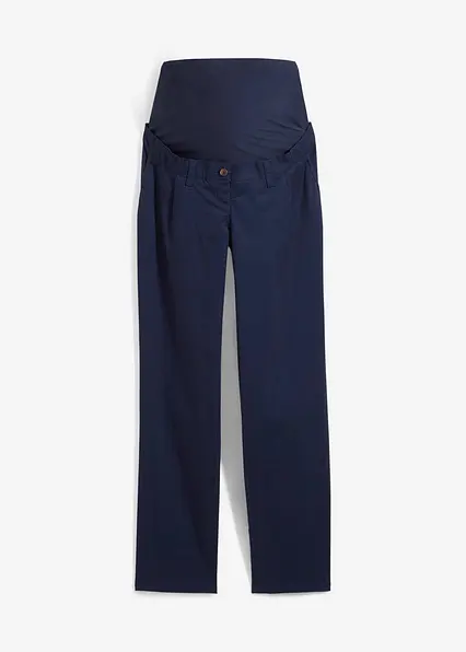 Die Umstandshose mit Baumwolle und Straight Leg vereint Komfort und modernen Stil. Der gerade Schnitt sorgt für eine klassische, zeitlose Passform, die sowohl bequem als auch schick ist. Der hohe Baumwollanteil macht die Hose besonders atmungsaktiv und angenehm auf der Haut, während der elastische Bund sich sanft dem wachsenden Babybauch anpasst. Für ausreichend Komfort, ist der Hosenbund mit einem elastischen Gummi versehen.
