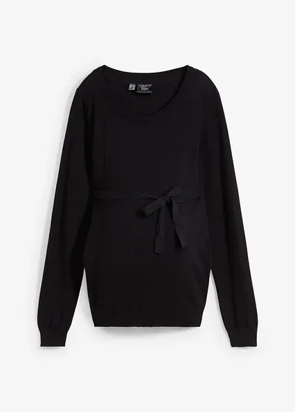 Umstandspullover aus reiner Baumwolle mit Bindeband in schwarz von vorne - bonprix