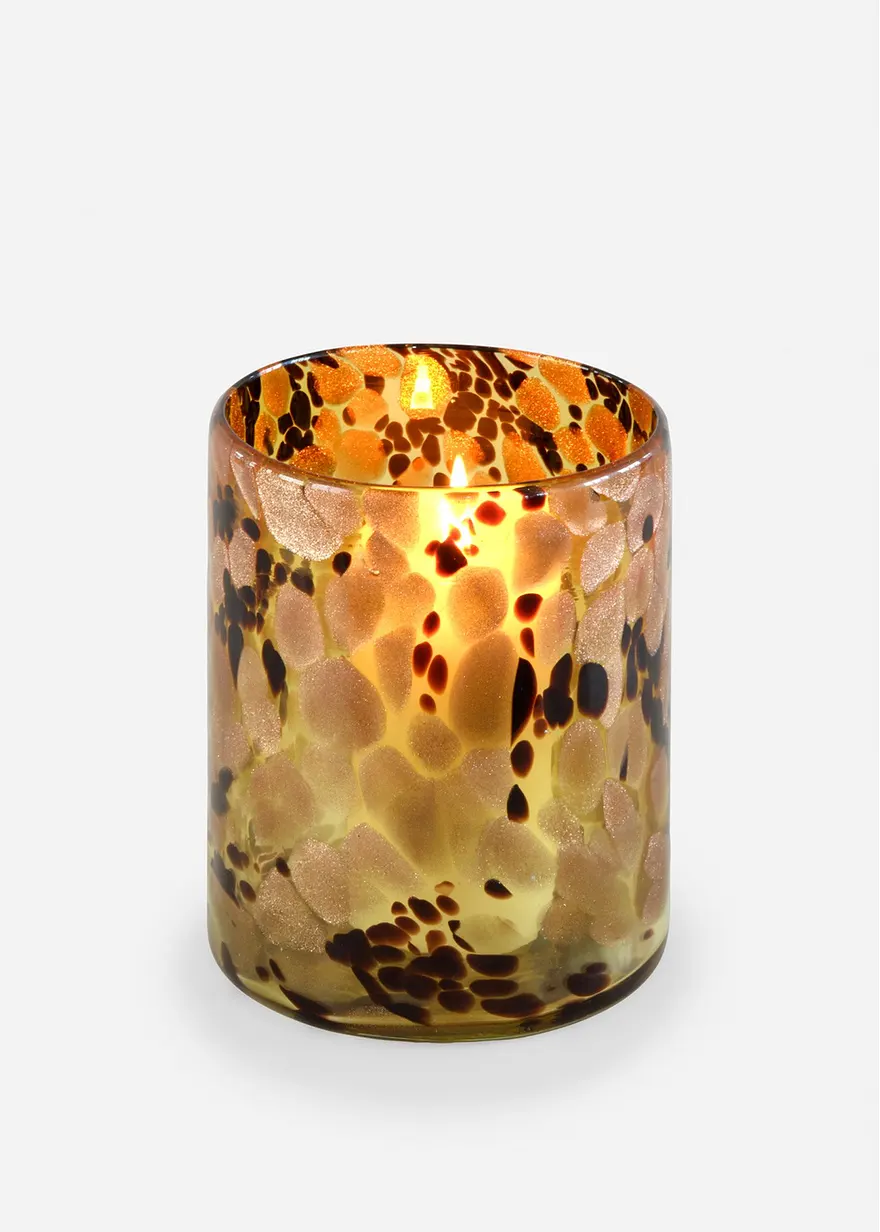 Windlicht mit interessanter Optik. Mit eingesetztem Teelicht oder Kerze verbreitet das Windlicht eine warme und ruhige Atmosphäre. Auch als Vase verwendbar.