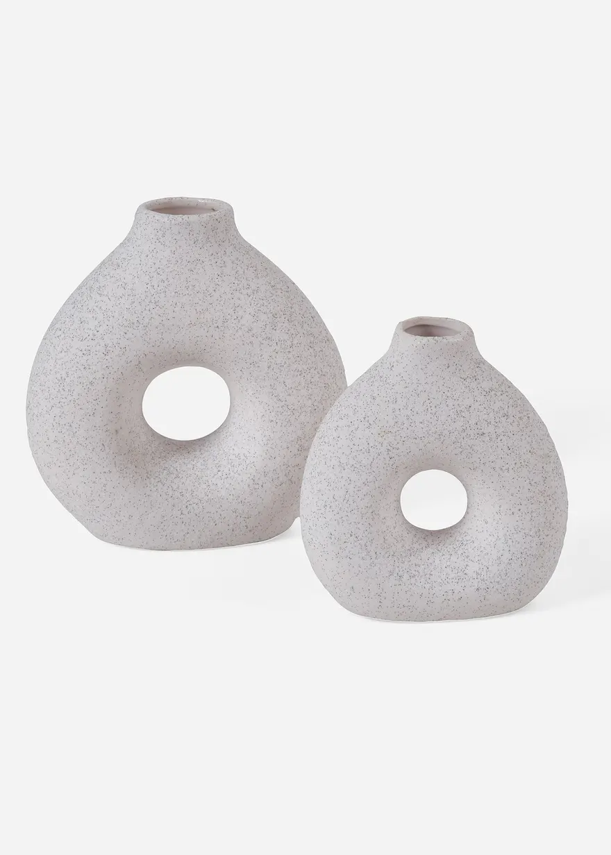 Diese außergewöhnlichen Vasen setzen mit ihrer einzigartigen Formgebung moderne Akzente. Das minimalistische Design mit der charakteristischen Öffnung verleiht jedem Blumenarrangement eine besondere Note. Die matte Oberfläche und die dezente Farbgebung unterstreichen die zeitlose Eleganz der Vasen. Ob einzeln oder im Set – diese Vasen sind ein stilvoller Blickfang in jedem Ambiente.