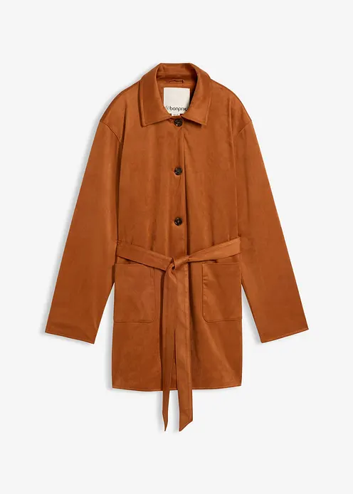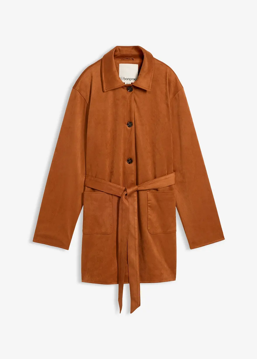 Velourslederimitat-Kurzmantel mit Gürtel