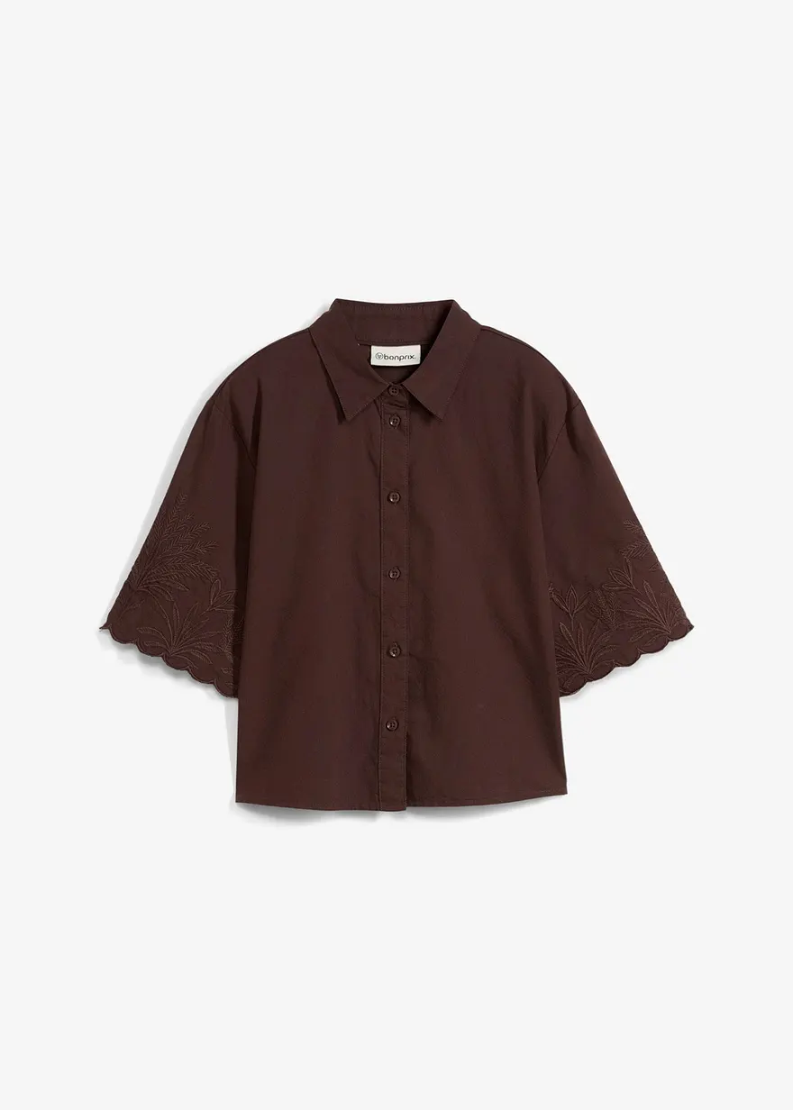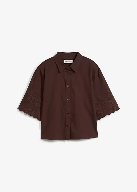 verkürzte Hemdbluse mit Seidenanteil