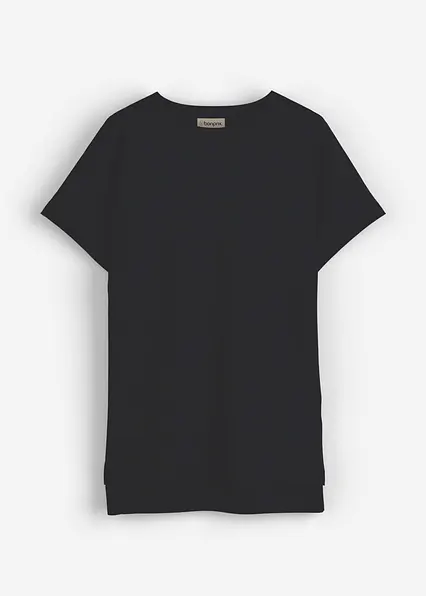 Vokuhila-Shirt mit Seitenschlitzen und raffiniert umgeklappten Kimono-Ärmeln