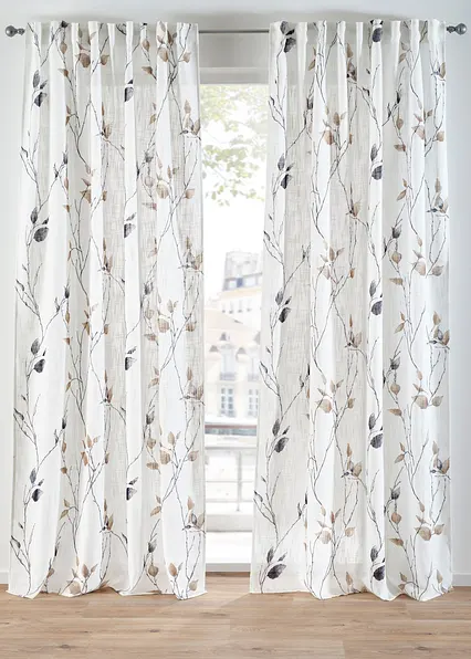 Vorhang mit Zweigen mit recyceltem Polyester (1er Pack) in weiß - bonprix